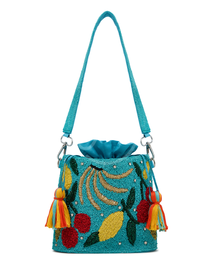 FRUITY BEADED HANDBAG IN BLUE