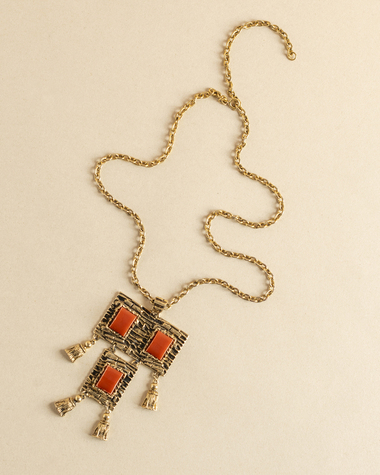 Vintage Gold & Turquoise Statement Pendant Necklace