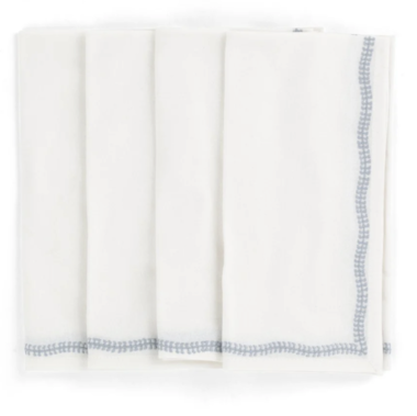 Cotton Napkin with Embroidered Border - Dusty Blue