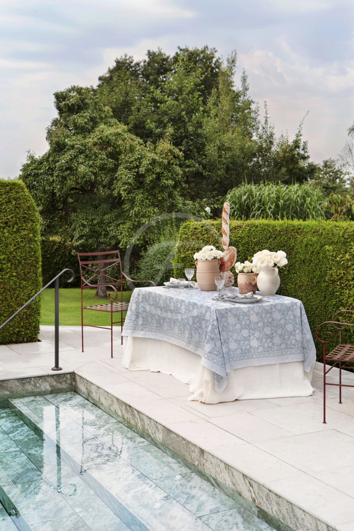 Cotton Tablecloth Indian Rose - Dusty Blue