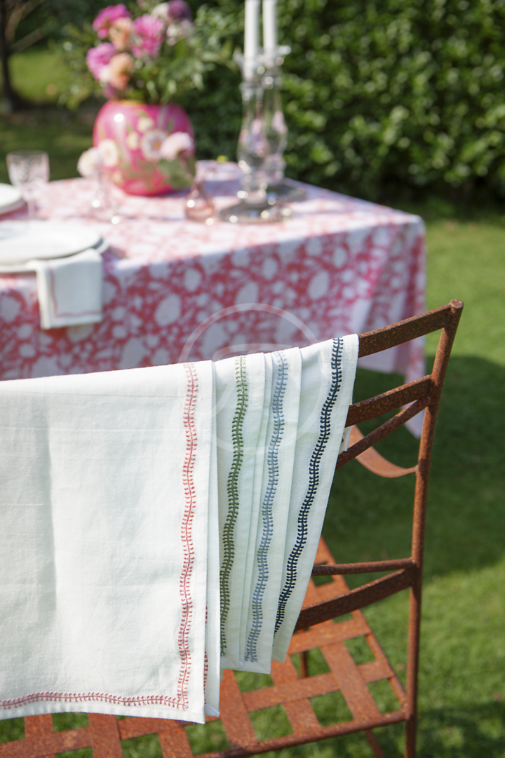 Cotton Napkin with Embroidered Border - Lantana Rose
