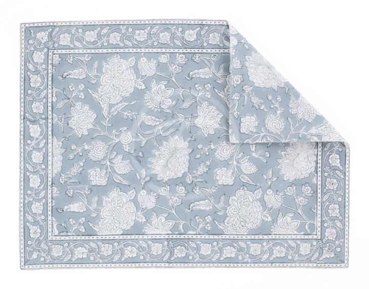 Cotton Placemat Reversible Indian Rose - Dusty Blue