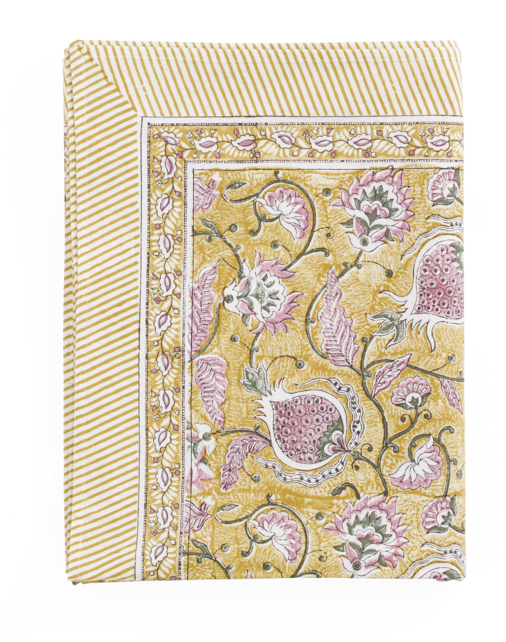 Cotton Tablecloth Pomegranate - Yellow & Rose