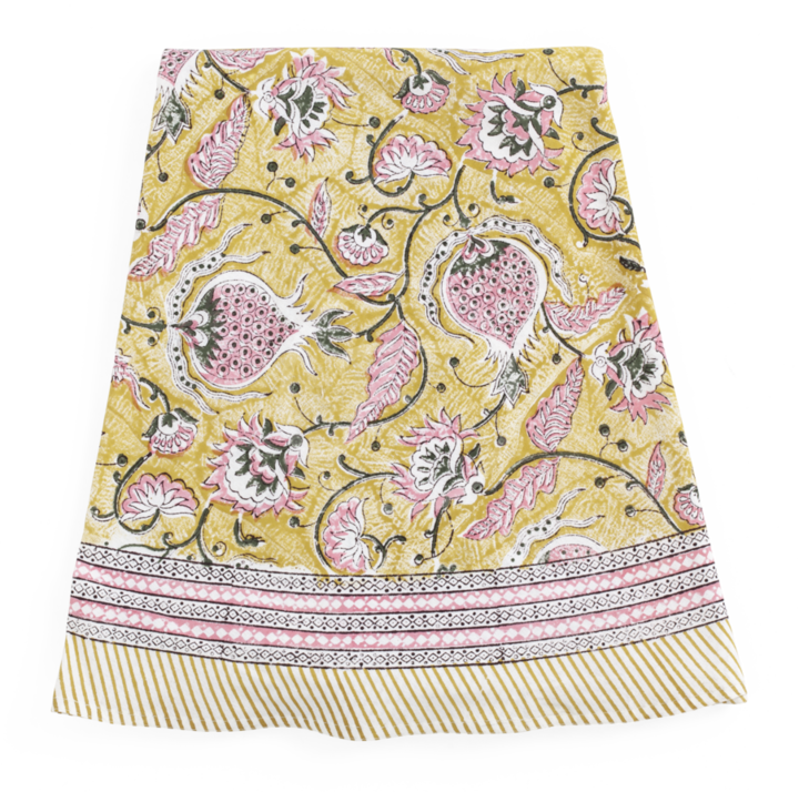 Cotton Tablecloth Pomegranate - Yellow & Rose Rnd 220