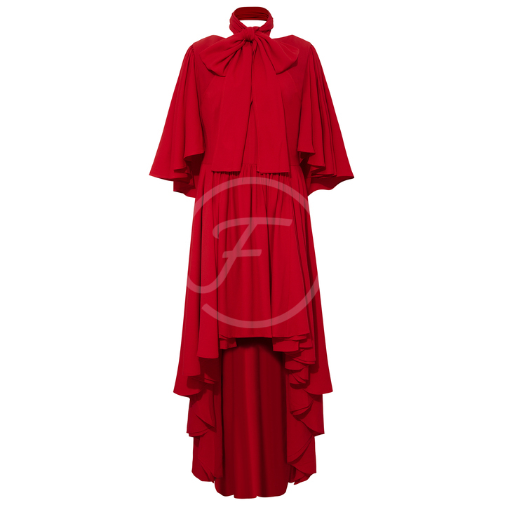Bow Tie Neck Red Cape Maxi Dress