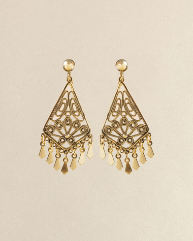 Vintage Gold Filigree Chandelier Clip On Earrings