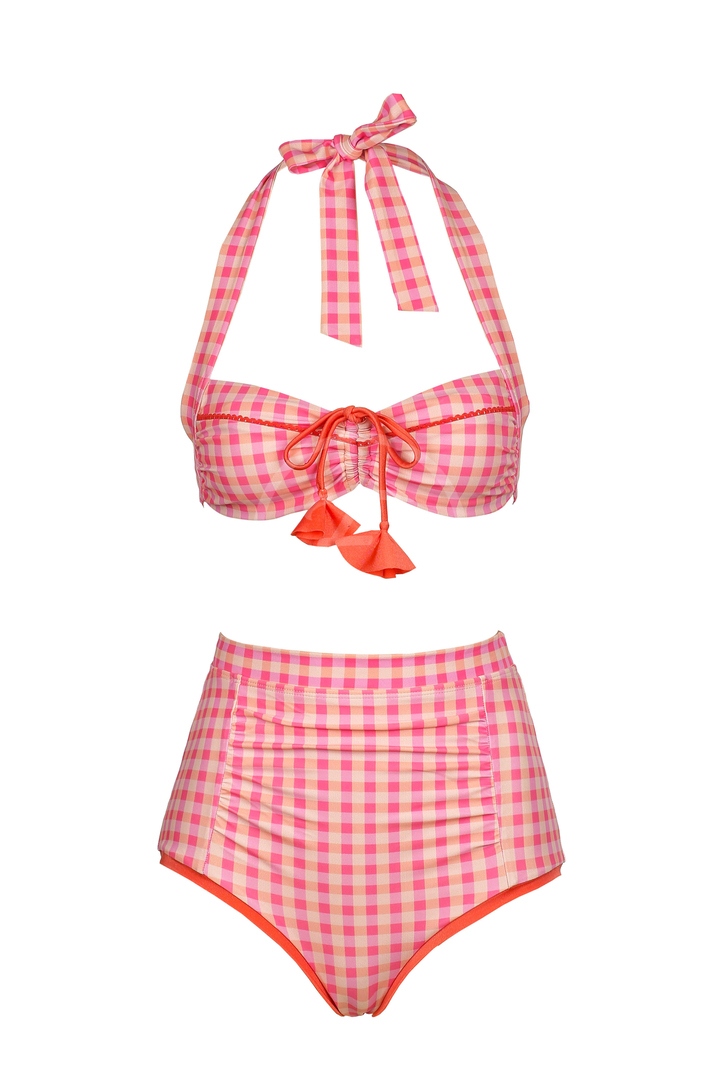 50s Halter High Bikini in Pink Picnic