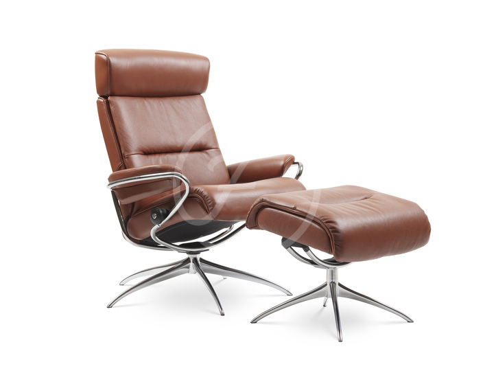 Stressless® Tokyo Adjustable Headrest Cross base in Paloma New Cognac Polished metal