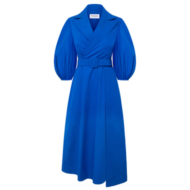 Blue Wide Lapel Asymmetric Belted Dress